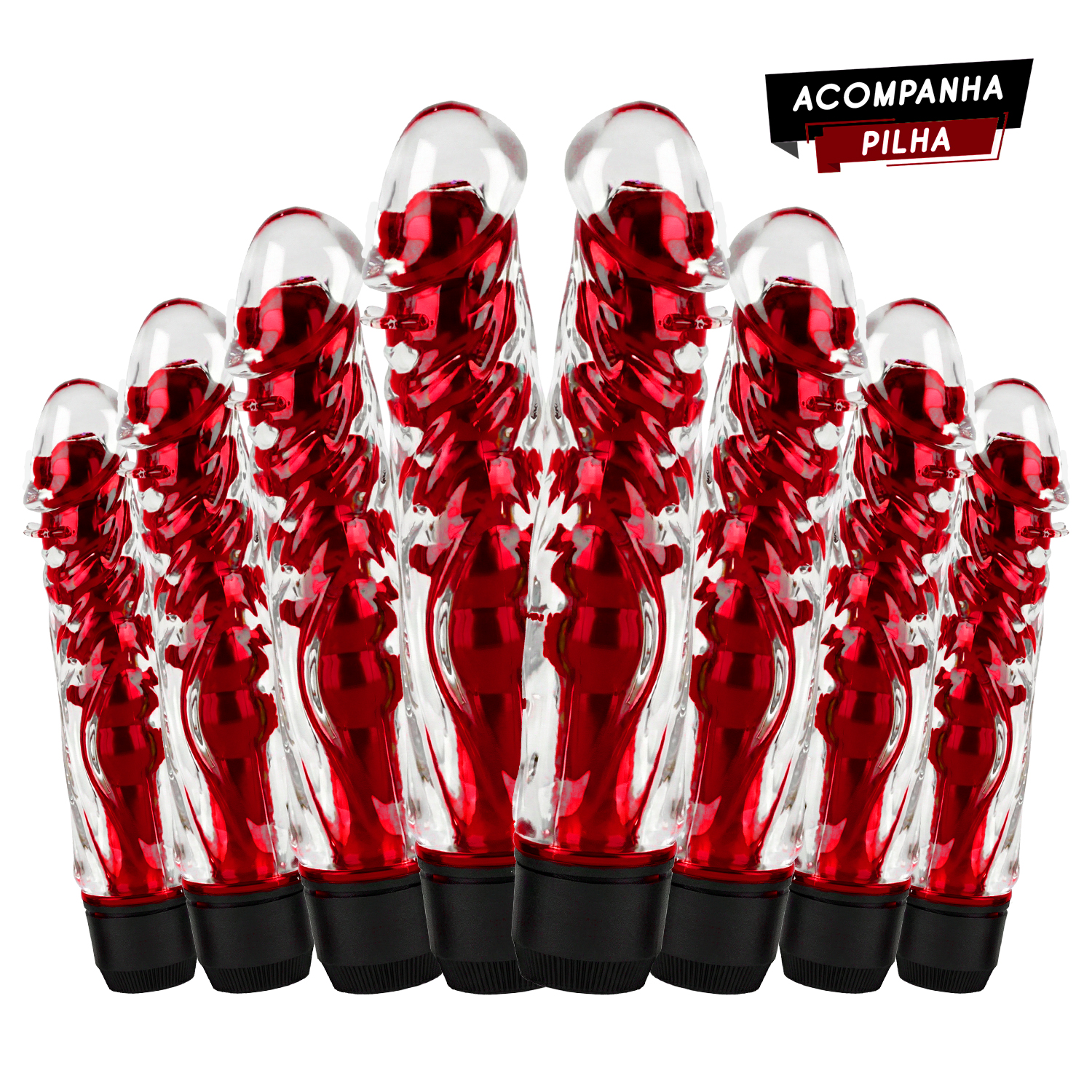 Ele funciona como um "2 em 1". A cliente pode usar o conjunto completo (para uma penetração mais grossa e texturizada) ou remover a capa e usar apenas o vibrador liso. Além disso, por vir sem caixa (embalagem econômica), ele permite uma margem de lucro excelente para você.